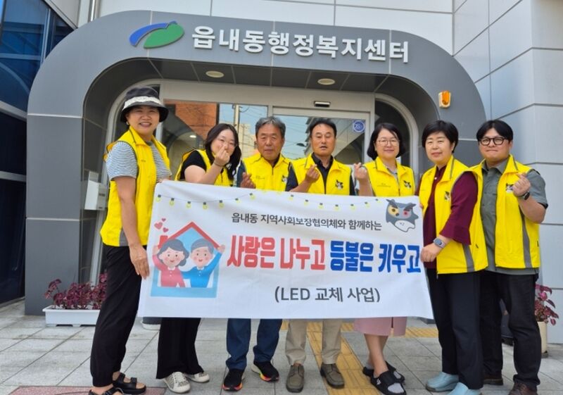 『사랑은 나누고 등불은 키우고 – LED등 교체사업』은 2022년부터 추진하고 있는 읍내동 자체 특화사업으로, 전년도 모금된 후원금으로 지역사회보장협의체 위원들이 LED등을 구입하여 직접 노후된 전등을 교체하는 재능기부 사업으로 추진하고 있다.
