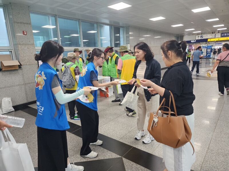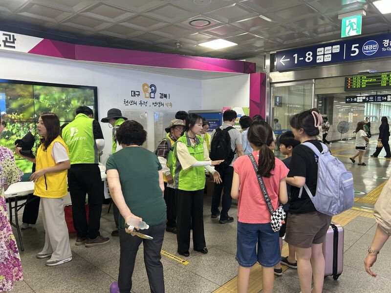 대구광역시와 대구광역시자원봉사센터(센터장 정연욱)는 중복을 맞아 무더위에 지친 대구 시민과 방문객들을 위해 7월 30일(수) 오후 2시, 동대구역 광장에서 ‘건강한 여름나기 자원봉사활동’을 진행했다.