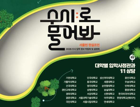 내년도 대학 수시모집이 전체 대입 정원의 약 80%에 이를 것으로 발표(2026학년도 대학입학전형시행계획, 교육부)된 가운데 서울시가 입시박람회를 마련했다.