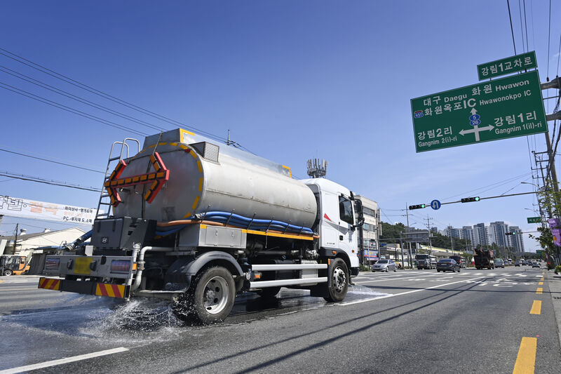 도로 온도를 낮추기 위한 살수차 운영도 병행된다. 폭염 특보가 발효되면 살수차 4대를 동원해 주요 간선도로 230㎞ 구간에 하루 2회 살수를 실시한다. 도로 복사열과 열섬 현상을 줄이기 위한 조치다.