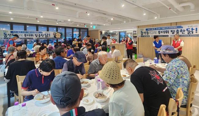 서울 성북구 동선동 주민자치회가 지난 20일 ‘동선동에서 무더위 탈출한닭!’ 행사를 열고 취약계층 어르신 150여 명에게 삼계탕 식사와 반려식물을 나누며 건강한 여름나기를 지원했다.