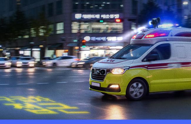 ‘구급차 시청각 안전장치’는 로고라이트와 고출력 지향성 사이렌으로 구성된다. 로고라이트는 교차로 진입 전 도로 바닥에 ‘구급차 접근’ 등의 경고 문구를 투영해 운전자가 시각적으로 인지할 수 있도록 돕는다.