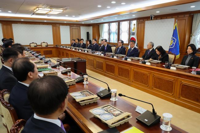 또한 그는 “대한민국은 여전히 대내외 복합 위기에 직면해 있으며, 이를 극복하기 위해서는 국무위원들이 매 순간 심기일전하는 자세가 필요하다”고 강조했다. 이어 “민생 문제는 물론 외교, 안보, 경제, 치안, 행정 등 국정의 전 분야가 원활하게 작동될 수 있도록 각 부처는 속도감 있게 정책을 추진해달라”고 당부했다.