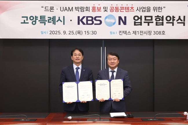 고양특례시(시장 이동환)는 지난 25일(목) 고양 킨텍스에서 KBS N(대표이사 이강덕)과 `드론·도심항공모빌리티(UAM) 박람회 홍보 및 공동 콘텐츠 사업을 위한 업무협약(MOU)`을 체결했다고 밝혔다.