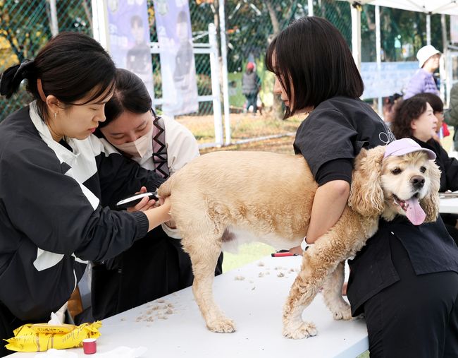 `2024 노원에서 반려동물과 함께 즐겨요` 애견 미용 체험 부스 모습.서울 노원구(구청장 오승록)는 오는 10월 25일(토) 오전 10시부터 오후 4시까지 마들스타디움 축구장에서 반려동물 문화축제 ‘2025 노원에서 반려동물과 함께 즐겨요(이하 노원반함)’을 연다고 밝혔다.