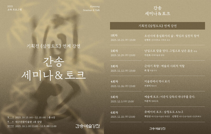대구간송미술관(관장 전인건)은 광복 80주년 기념 기획전 《삼청도도 – 매·죽·난, 멈추지 않는 이야기》와 연계하여 ‘간송예술강좌: 세미나 & 토크’를 운영한다.