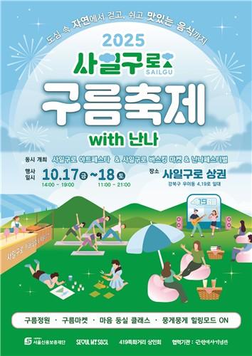 여기에 `뭉게뭉게 힐링모드 ON` 스탬프 투어, 포토존, 그리고 `사일구로 카페 팝업`과 `사일구로 북한산 농장` 등의 콘셉트로 꾸며진 푸드존까지 더해져, 주민과 방문객이 함께 먹고 쉬며 즐길 수 있는 지역 축제로 꾸며진다.