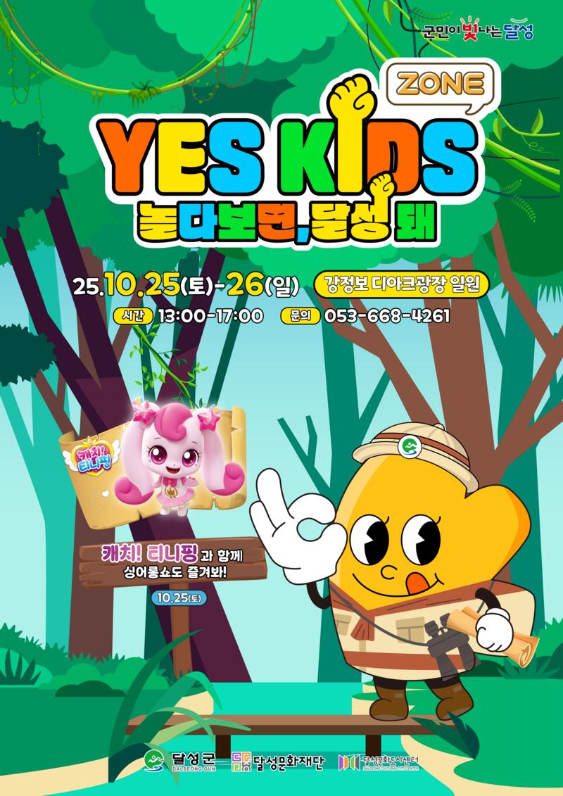 ‘YES! 키즈존’은 아이 키우기 좋은 도시 달성군의 대표 어린이 축제로, 2023년부터 매년 열리고 있다. 올해는 ‘달성탐험대’를 주제로, 아이들이 직접 탐험하고 상상력을 펼치는 참여형 체험 축제로 기획됐다.