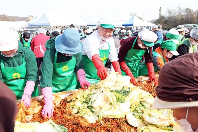 특히 LG이노텍, 이마트 파주점·파주운정점, 옛날시골밥상 등이 양념 재료 등을 후원하며 온정의 손길을 보탰다. 이날 담근 김장김치는 파주시에 거주하는 저소득 독거노인, 장애인, 소년소녀가장 등 취약계층 1,000여 가구에 전달될 예정이다.