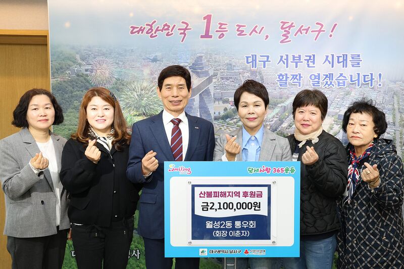 대구 달서구는 월성2동 통우회가 산불 피해 지역을 돕기 위해 총 210만 원의 후원금을 기탁했다.