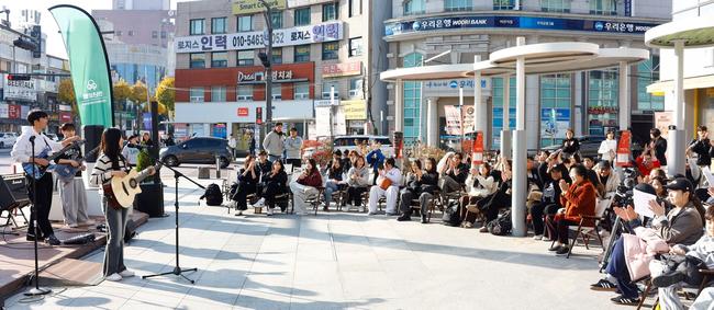 수능이 끝난 지난 11월 16일, 이천시 청년소상공인협회(회장 유수현)는 새롭게 단장된 분수대오거리 광장에서 수능을 마친 청소년들을 응원하는 버스킹 공연을 개최했다.