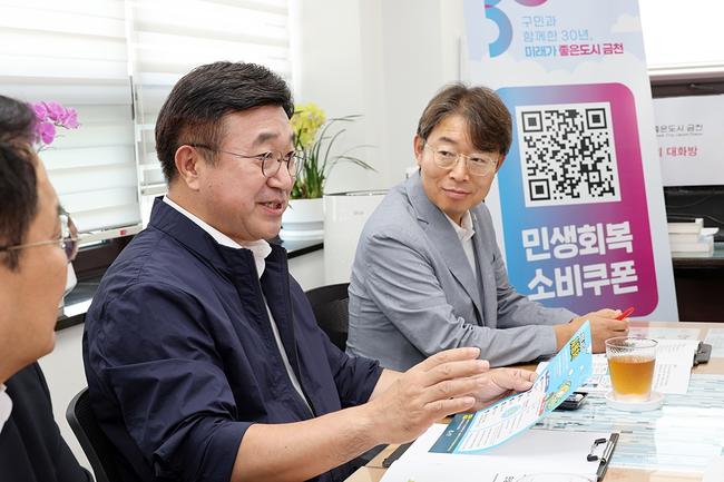 윤호중 행정안전부 장관이 7월 24일 오후 서울 금천구 시흥1동 주민센터를 방문하여 민생회복 소비쿠폰 신청 및 지급현장을 확인 점검하고 있다.