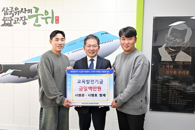 효령면 서병관(형, 25세)·병호(동생, 24세) 형제는 지난 24일 군위군청을 방문해 지역의 교육 발전과 인재양성을 위해 써달라며 100만원의 교육발전기금을 기탁했다.