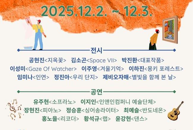 전시와 공연으로 구성된 이번 성과공유회는 올해 문화진흥기금 지원을 받아 활동한 지역 청년·청소년·장애예술인 등이 한 해 동안 쌓아온 창작 성과를 구민에게 선보이는 자리다.