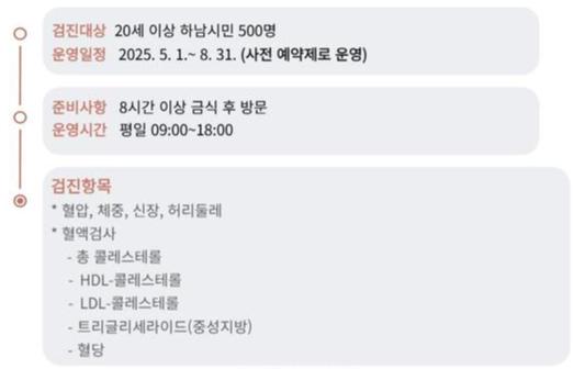 하남시, 대사성 질환 조기 발견을 위한 무료 선별검사 실시
