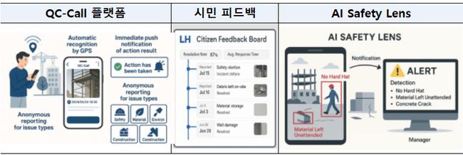 우수상으로는 두 건이 선정됐다. ‘국민 품질 감리단(QC-Call)’은 현장 안전·품질 문제를 실시간·익명으로 제보할 수 있는 국민참여형 감리 시스템으로, 제보 이미지에서 위험요소를 자동 인식하고 조치 과정을 타임라인으로 공개해 투명한 품질관리를 구현하는 방안이다. 또 다른 우수상인 ‘스마트 주거사다리 통합 플랫폼’은 청년과 신혼부부를 대상으로 생애주기별 최적 주거 형태를 추천하고, 청약·대출·디지털 계약을 원스톱으로 처리하는 통합 서비스 구축을 제안했다.