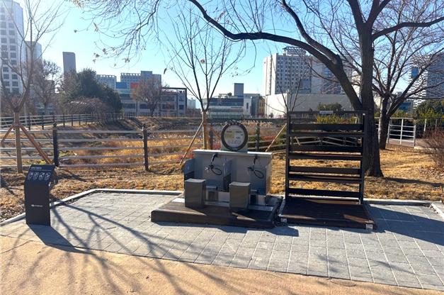 신서중앙공원 맨발산책로 세족장. 동구 제공.