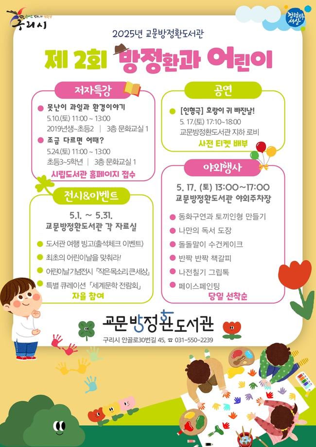 교문방정환도서관 방문자라면 누구나 참여할 수 있으며, 이와 관련한 자세한 내용은 구리시립도서관 홈페이지 또는 교문방정환도서관(031-550-2239)으로 문의하면 된다.