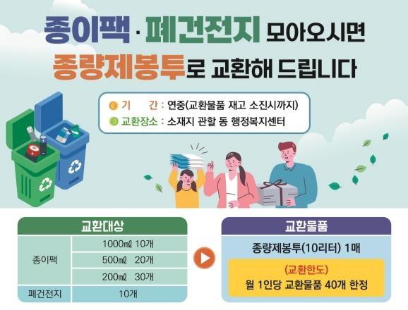 장터에서는 서구 구민을 대상으로 폐건전지 10개를 종량제봉투(10리터) 1매로 교환하는 행사와 생활 쓰레기 줄이기 홍보도 함께 진행될 예정이다.