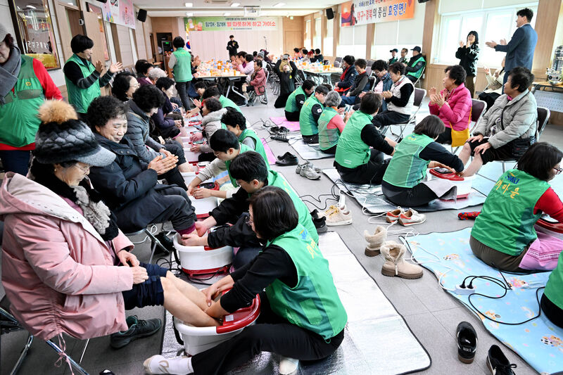 군위군새마을회(회장 박택관) 산하 직장공장새마을운동군위군협의회(회장 김천일)는 9일 오후, 효령면행정복지센터에서 지역 어르신 60여 명을 모시고‘찾아가는 공경문화 족욕봉사’를 실시했다.