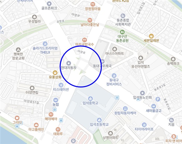 대구 동구청(구청장 윤석준)은 최근 교통사고가 잦은 3곳의 교차로 개선을 위한 실시설계 용역을 실시했다고 밝혔다. 입석네거리. 동구 제공.