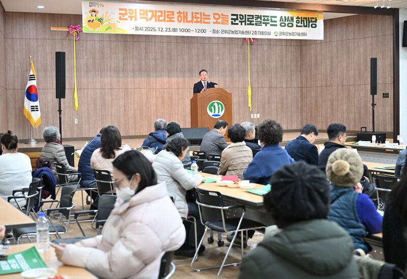 대구광역시 군위군(군수 김진열)은 12월 23일 연말을 맞아 지역 먹거리의 가치를 되새기고, 로컬푸드를 매개로 생산자와 소비자가 한 자리에 모이는 「2025년 군위 로컬푸드 상생한마당」행사를 개최했다.
