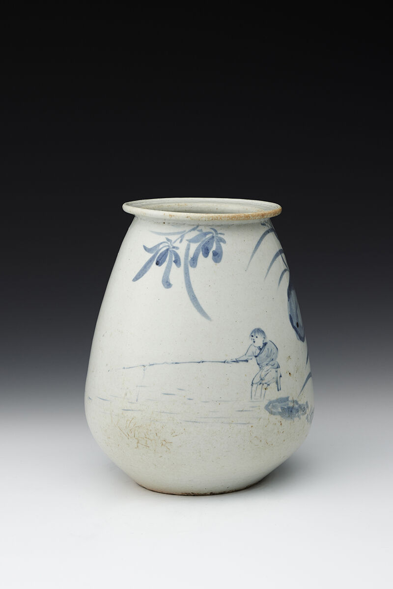 〈백자청화동자조어문병〉 ⓒ간송미술문화재단