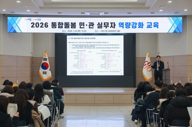 구로구, 민·관 통합돌봄 역량강화 교육 실시 - 통합돌봄법 전면 시행 앞두고 실무 대응력 강화 - 동 주민센터 실무자 등 민·관 관계자 대상 - 지역돌봄 통합지원 체계 구축 준비 본격화