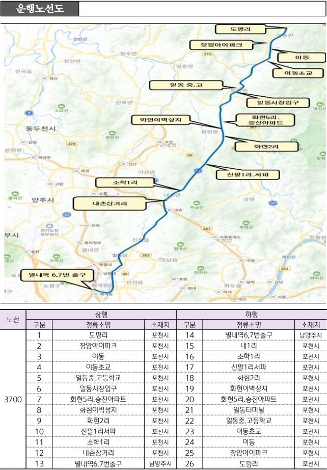 3700번 노선은 광역 대중교통 접근성이 상대적으로 낮았던 이동·일동·화현·내촌 지역 주민들의 도심 이동 편의를 높이고, 수도권 광역교통망과의 연계를 강화하기 위해 신설했다. 그간 해당 지역은 서울 및 수도권 주요 거점 직결 노선 이용에 어려움이 있었던 만큼, 이번 노선 개통으로 교통여건 개선에 실질적인 도움이 될 것으로 보인다.